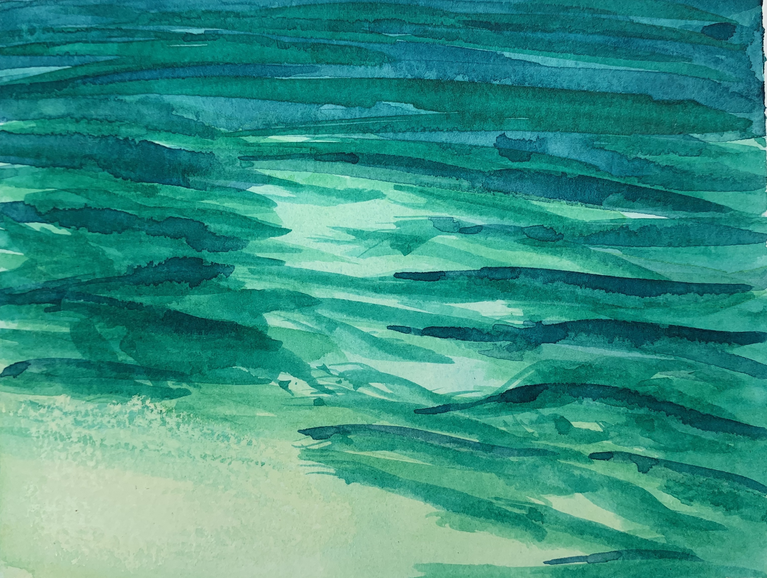 Here are a few other attempts to paint water. Much looser and softer, but not as defined as I’d like. I was really trying to use layering and pigment transparency to create the feeling of looking into the depths of water. Not what happened, but I’ll get there!