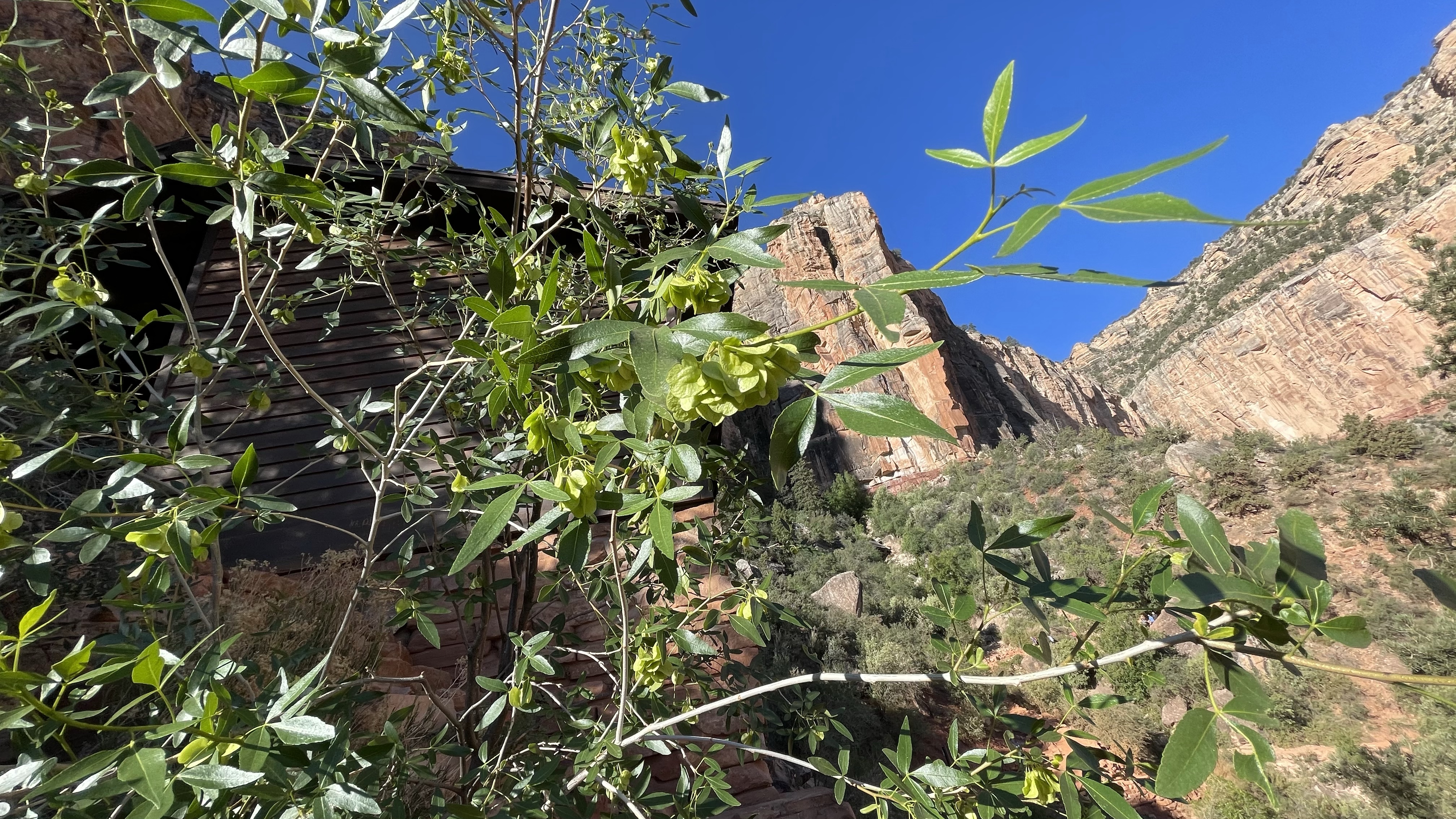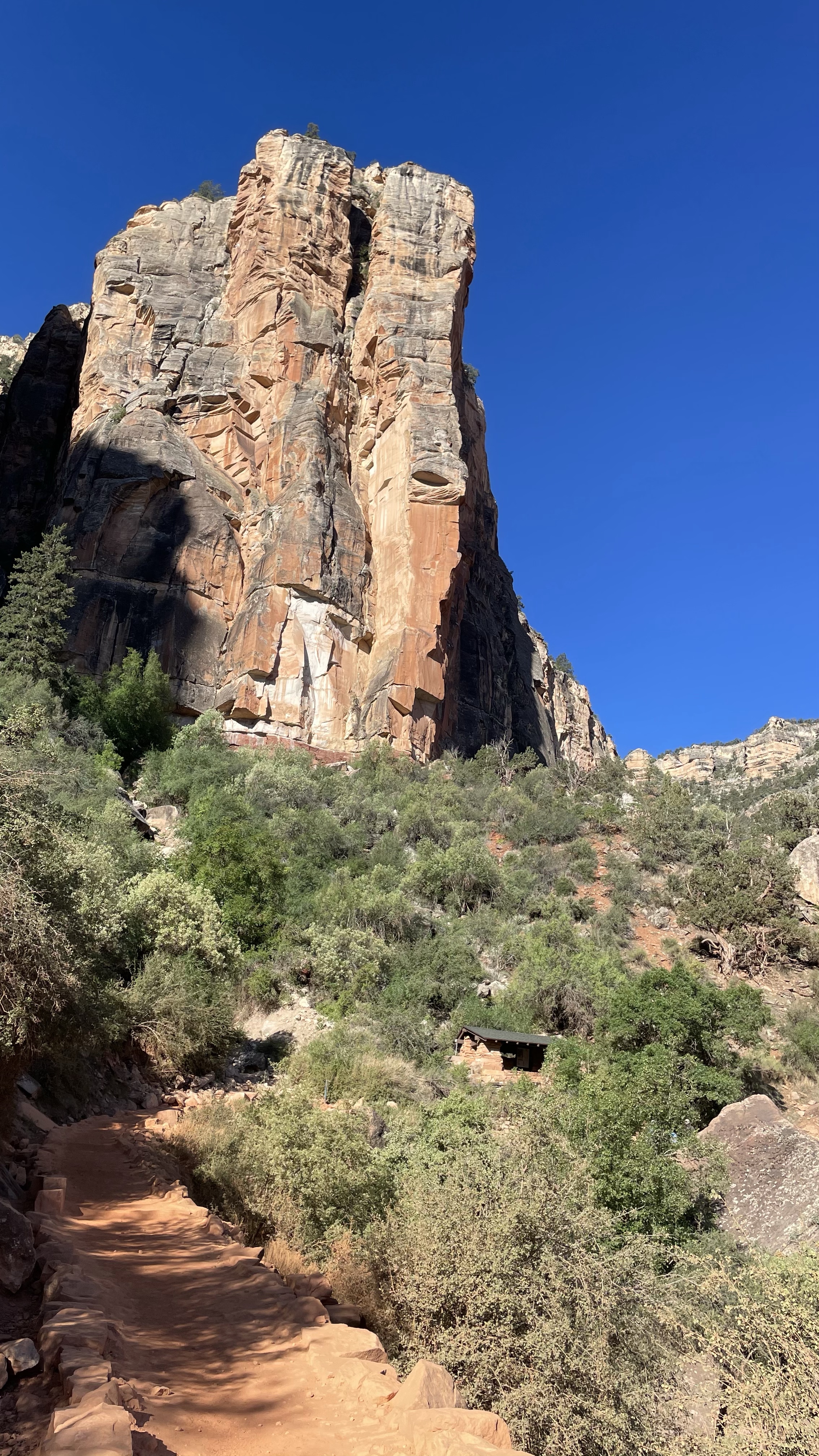 The next morning, we got up before the sun and made our way to the Bright Angel trailhead. Chuck and Mia stayed to watch the sun rise from the trail head while I hiked 1.5 miles down the trail to the mile-and-a-half rest house and back. I hiked those 3 miles at a botanical pace – which is to say, very slowly, taking plant ID and canyon vista pictures every few feet. Even with the short distance and slow pace, I have to say that hike was harder for me than most of the hikes I done to date. I am really, really not acclimated to altitude. I was panting like I was running a marathon the whole 3 miles. And, speaking of marathons, I did actually see two people run by at sprinting speed in marathon runner gear – I had to stop and catch my breath just watching them! Wow!