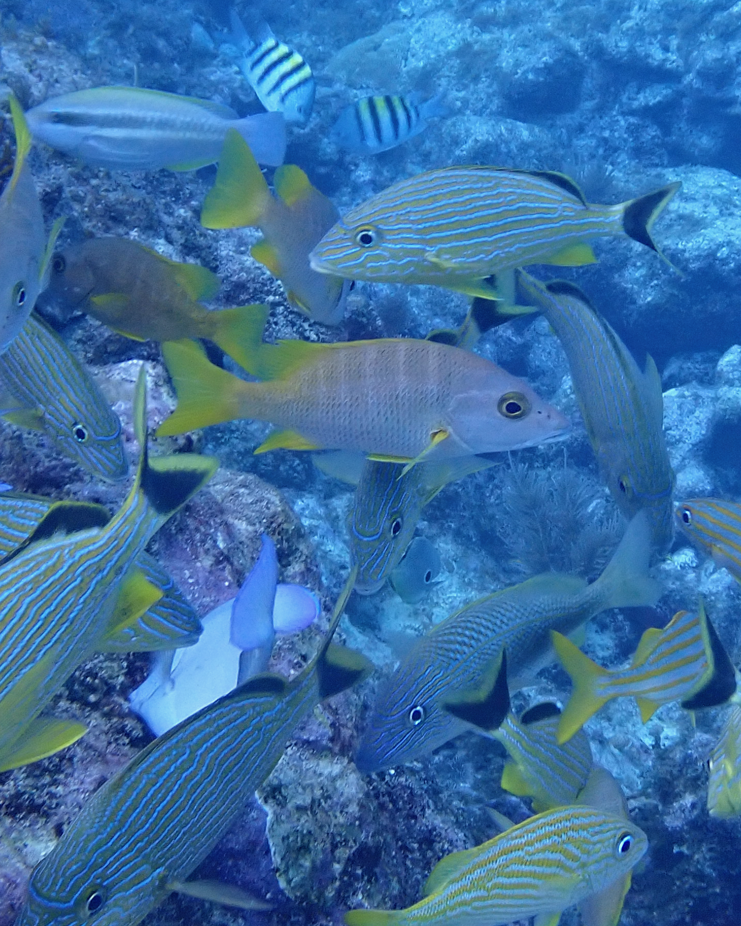 Some of the Snappers hunt in groups around the roof, some hunt and live alone, and some live out in the open ocean in very deep water.