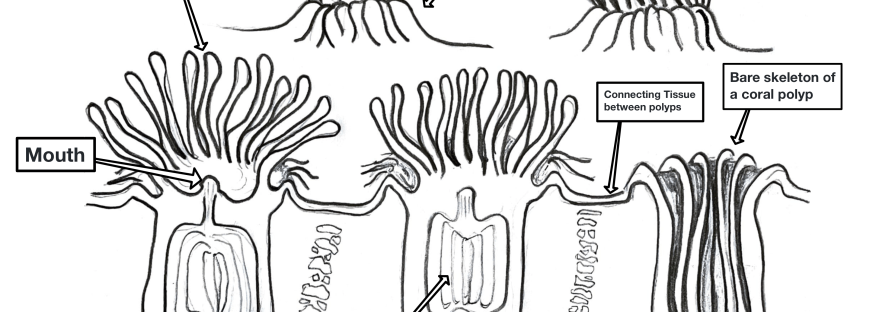 Coral Polyps have a tube-shaped body with a big open space in the middle where they digest their food. This area is called a gastrovascular cavity and it is basically their stomach.