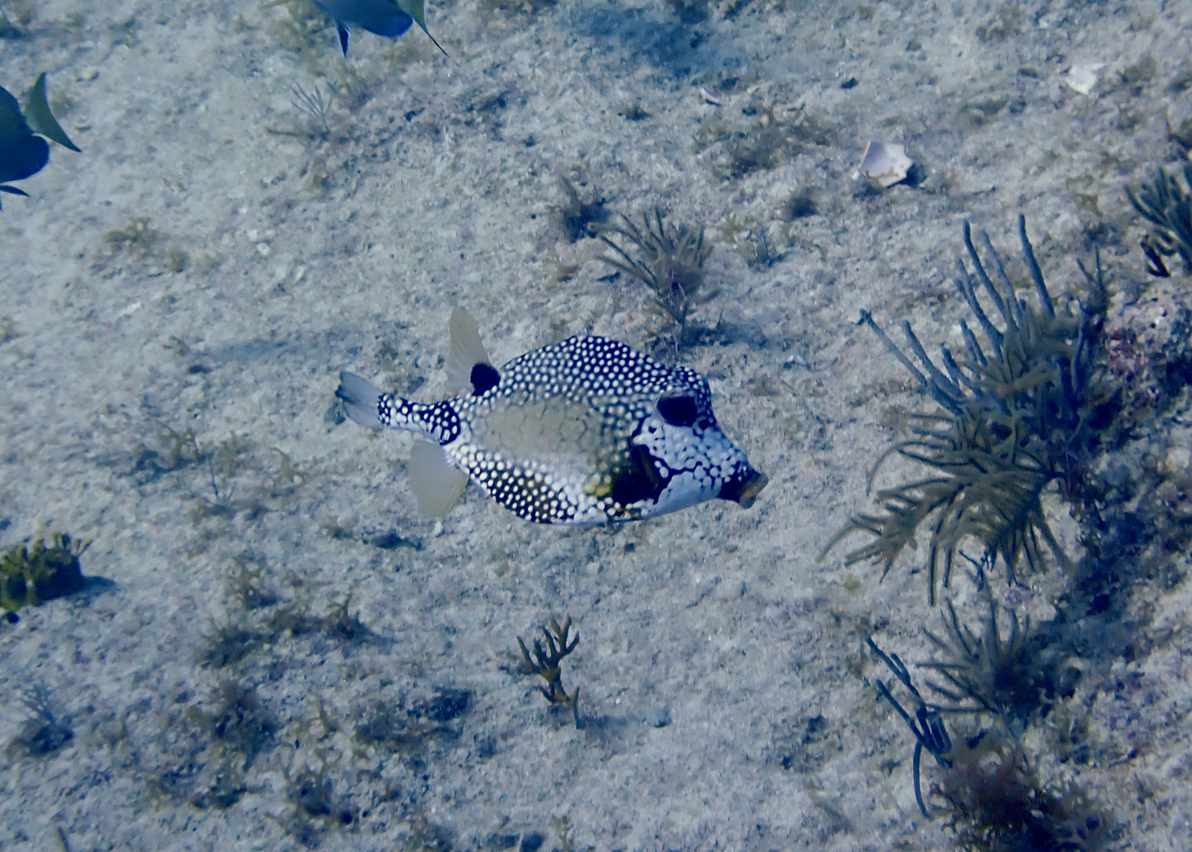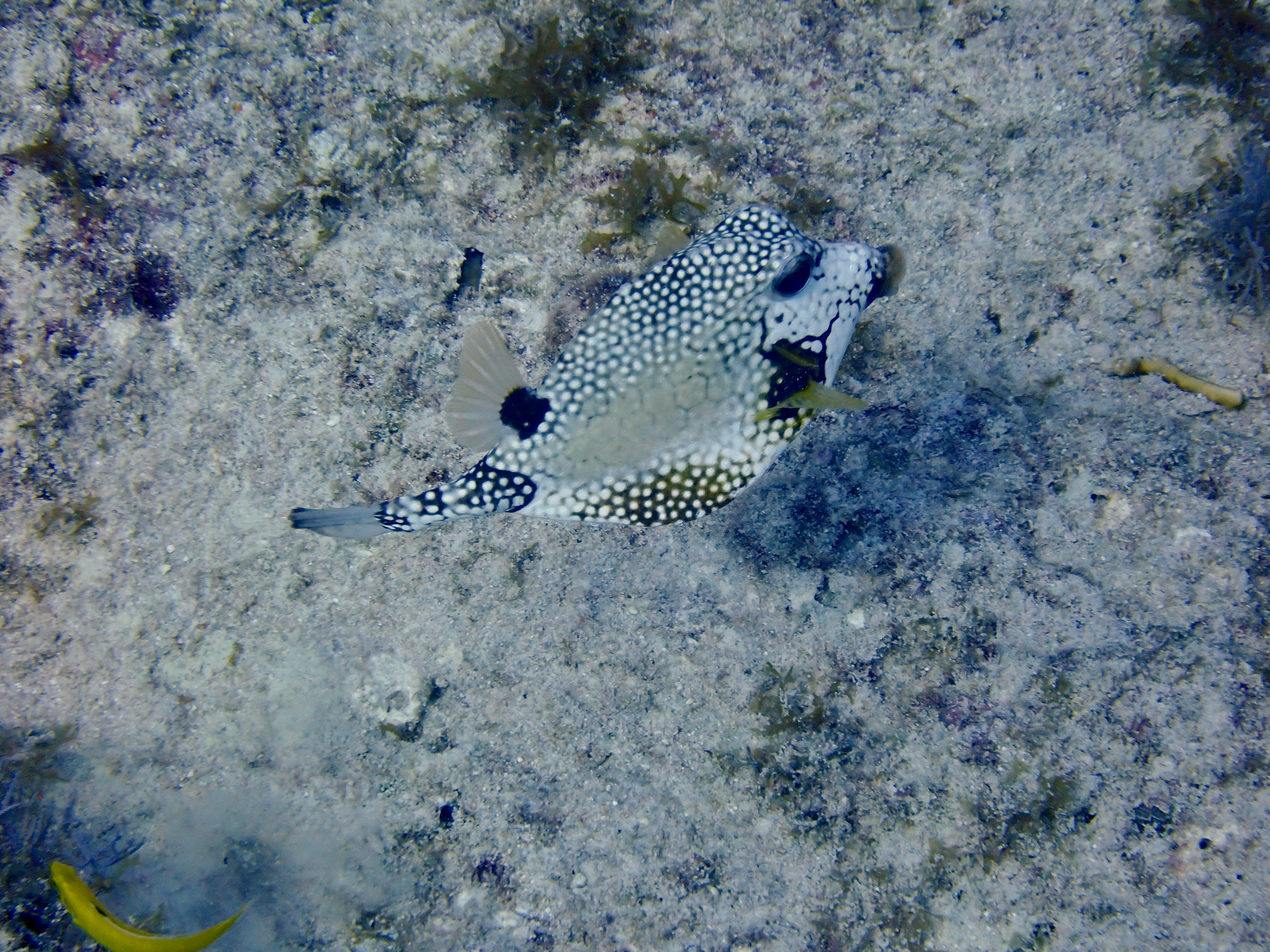 You are very likely to see a Smooth Trunkfish not only because they are fairly common, they are also not shy and don’t mind if you swim over slowly to watch while they go about their business.