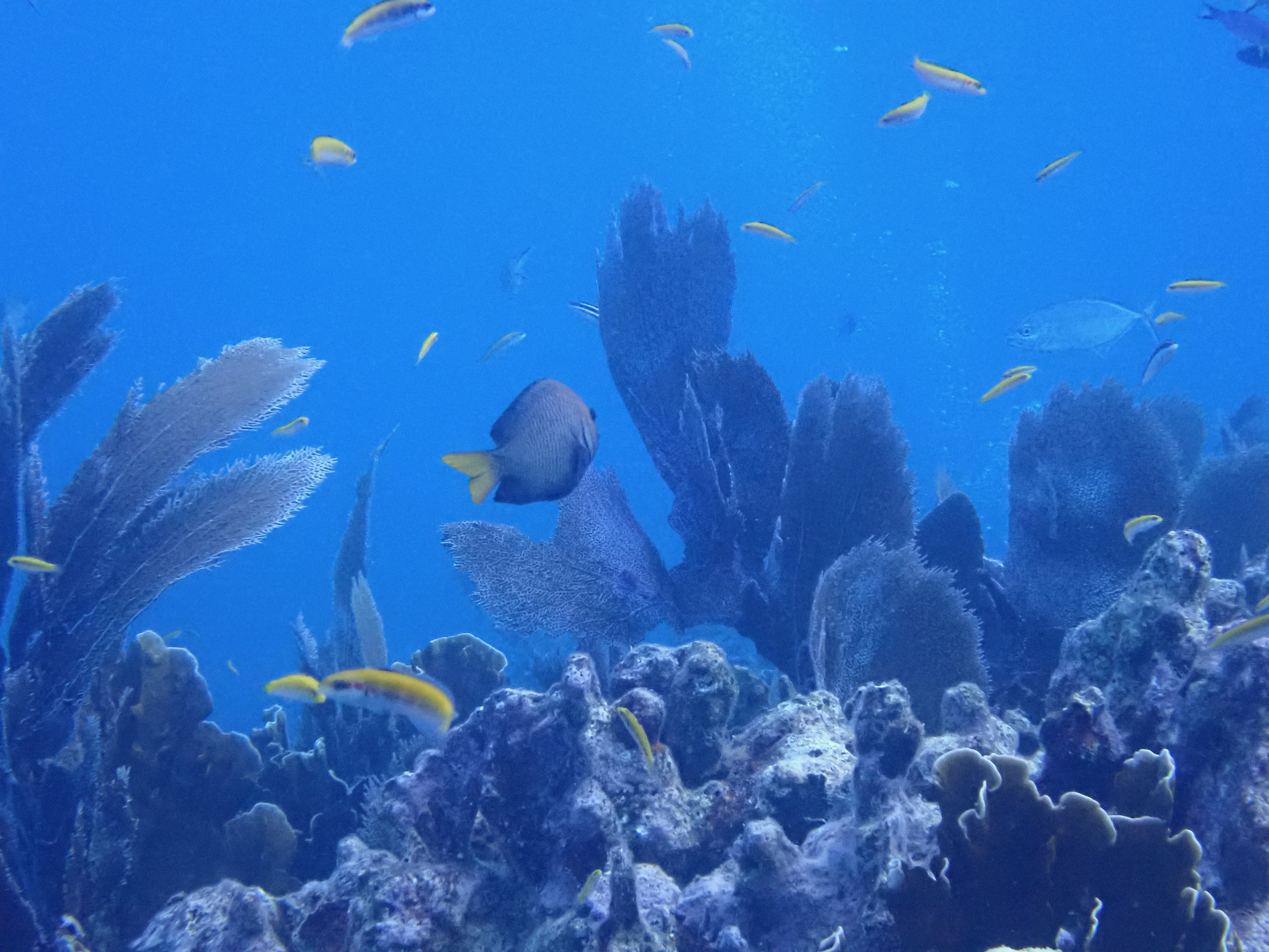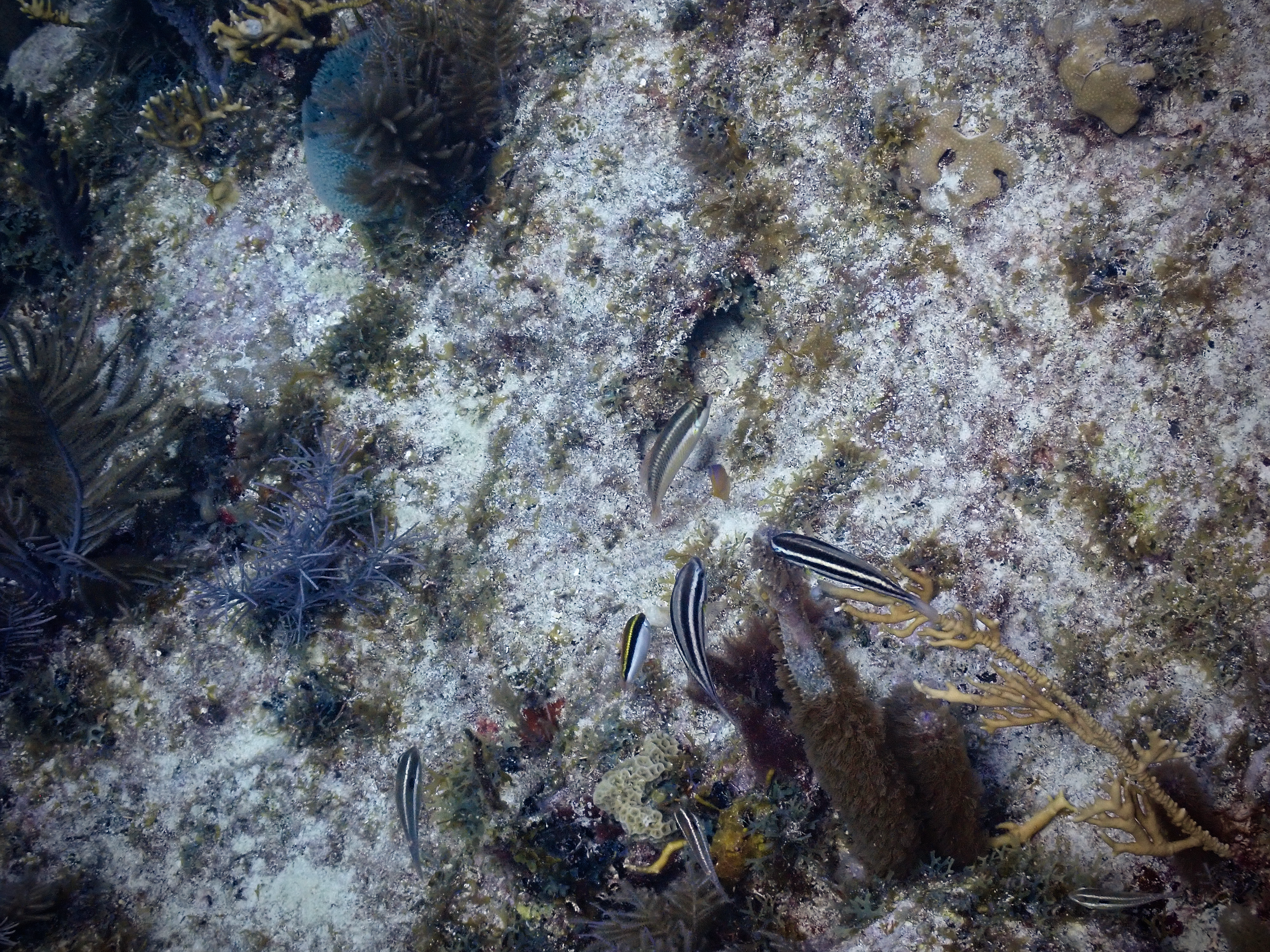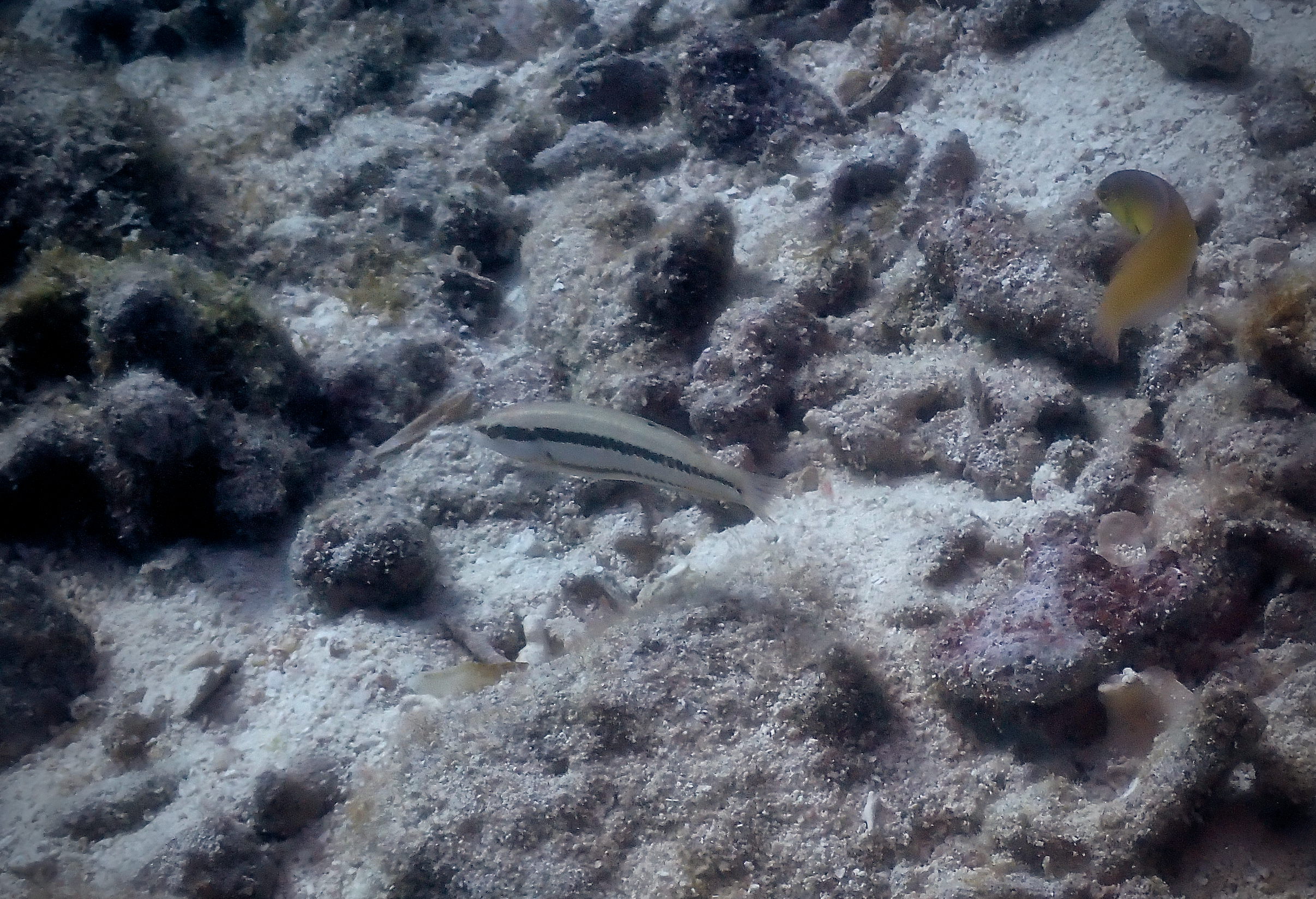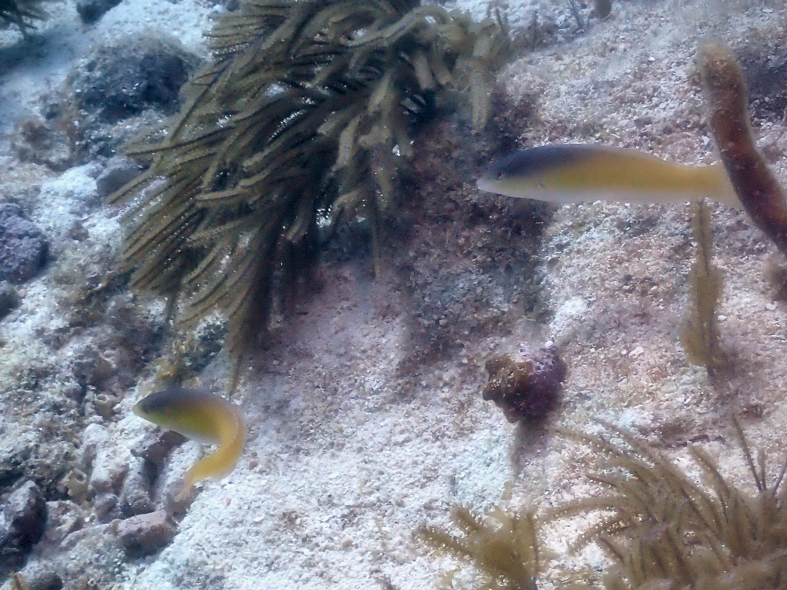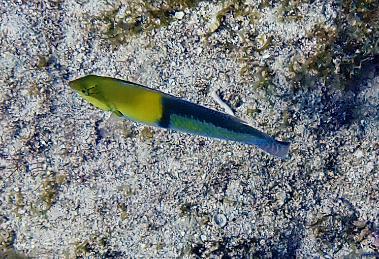 In the video below, an Initial Phase Yellowhead and a couple Juvenile Bluehead wrasses watch me play in the sand and try to snag some snacks.