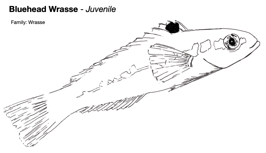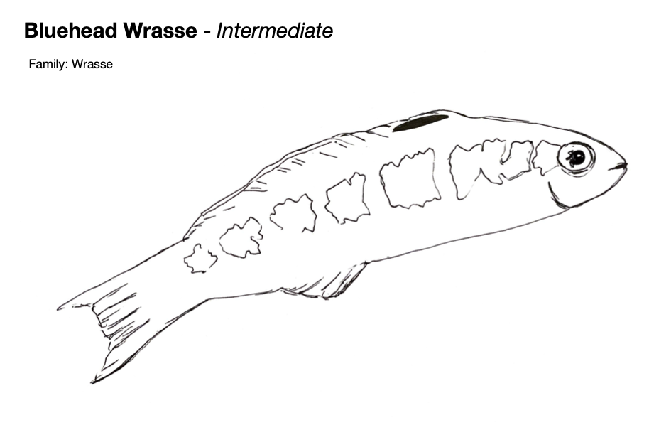 Below are a collection of photos with several juvenile and Initial phase Bluehead wrasse that includes some of their color and pattern variations.