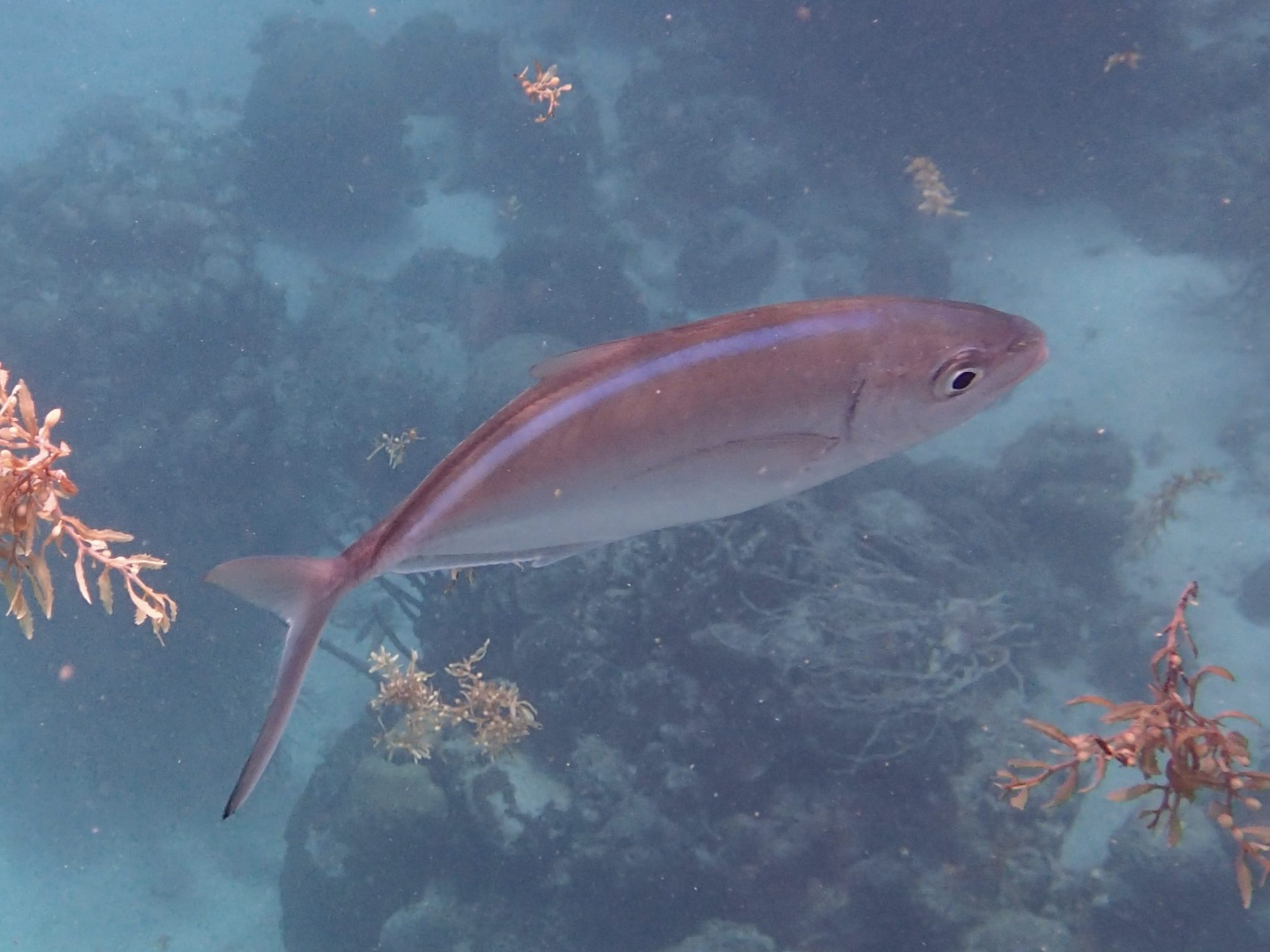 Bar Jacks aren’t shy fish! They like to swim along above the reef – sometimes next to divers and underneath snorkelers! Maybe they’re curious, or maybe they like the bubbles from divers!