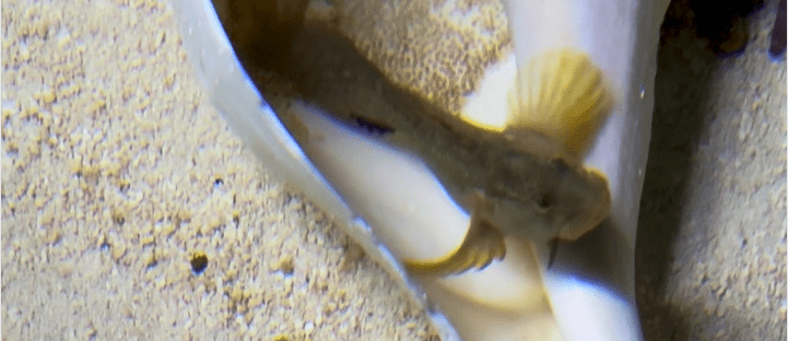I've been watching this blenny hiding in its shell in the MOTE grass flats exhibit for a few weeks now when another volunteer mentioned that it's a male guarding eggs. Once I heard that, I had to learn more. Florida blennies live in mangroves, seagrass beds, oyster reefs and rocky intertidal zones. This Florida blenny… Continue reading Florida Blenny Guarding Eggs